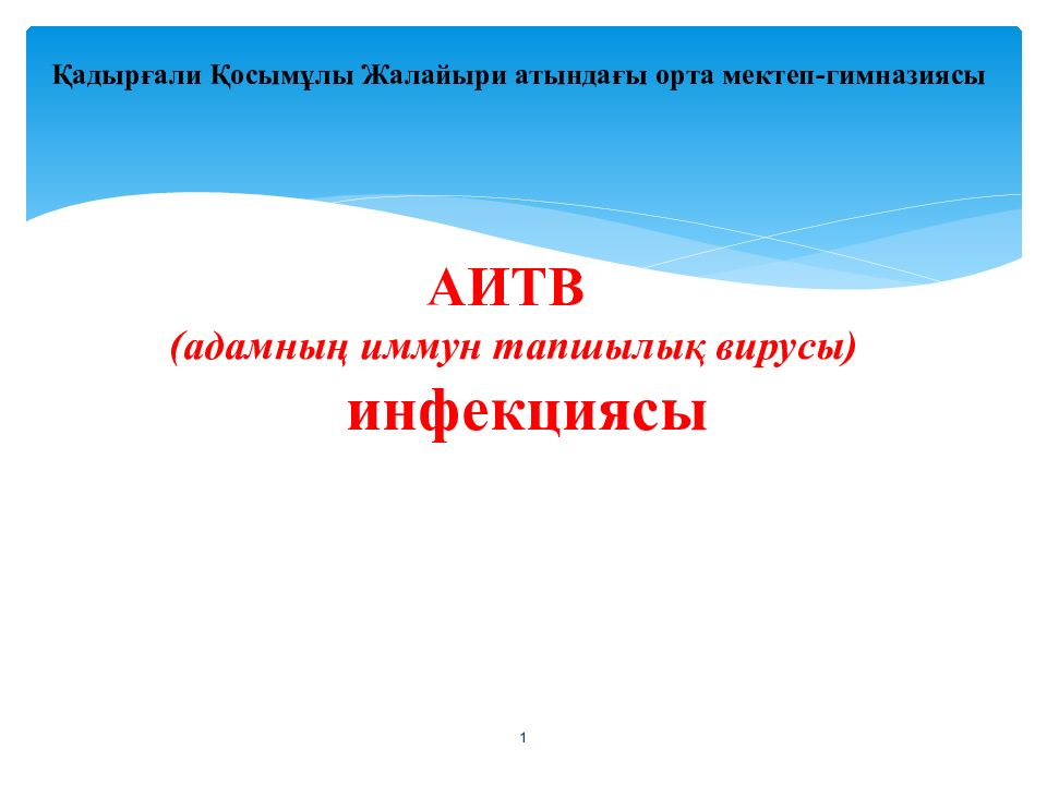 Қадырғали Қосымұлы Жалайыри атындағы орта мектеп-гимназиясы 1 АИТВ ( адамның иммун тапшылық вирусы) инфекциясы