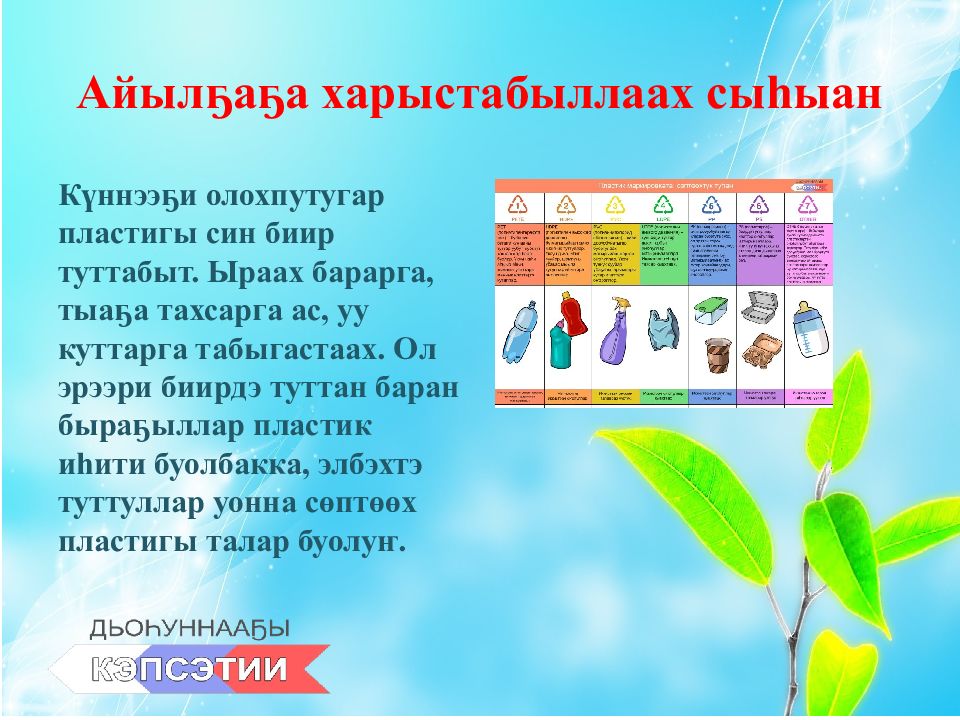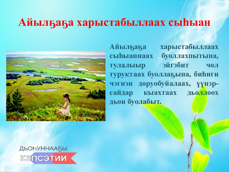 Последний слайд презентации: Айылҕаҕа харыстабыллаах сыһыан: Айылҕаҕа харыстабыллаах сыһыан
