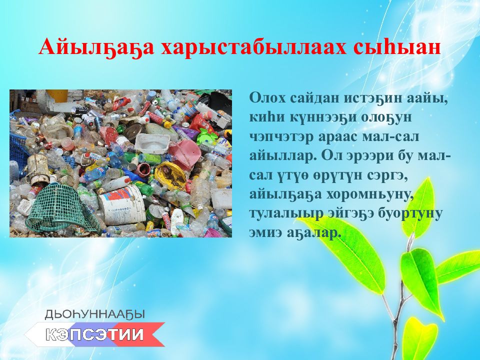 Слайд 9: Айылҕаҕа харыстабыллаах сыһыан