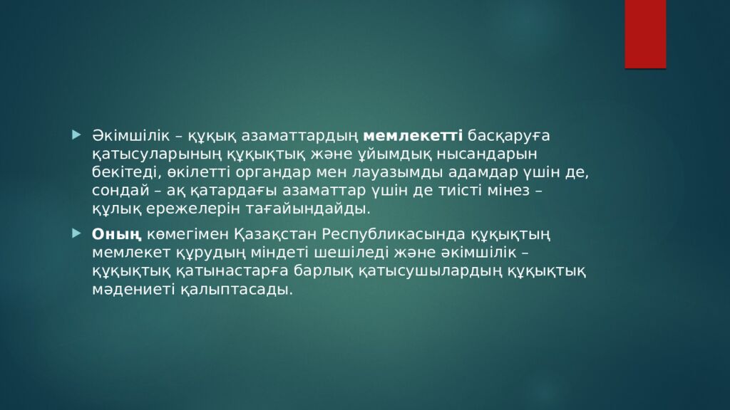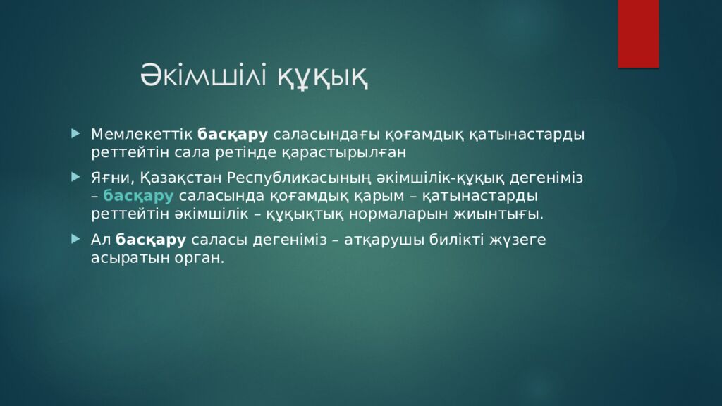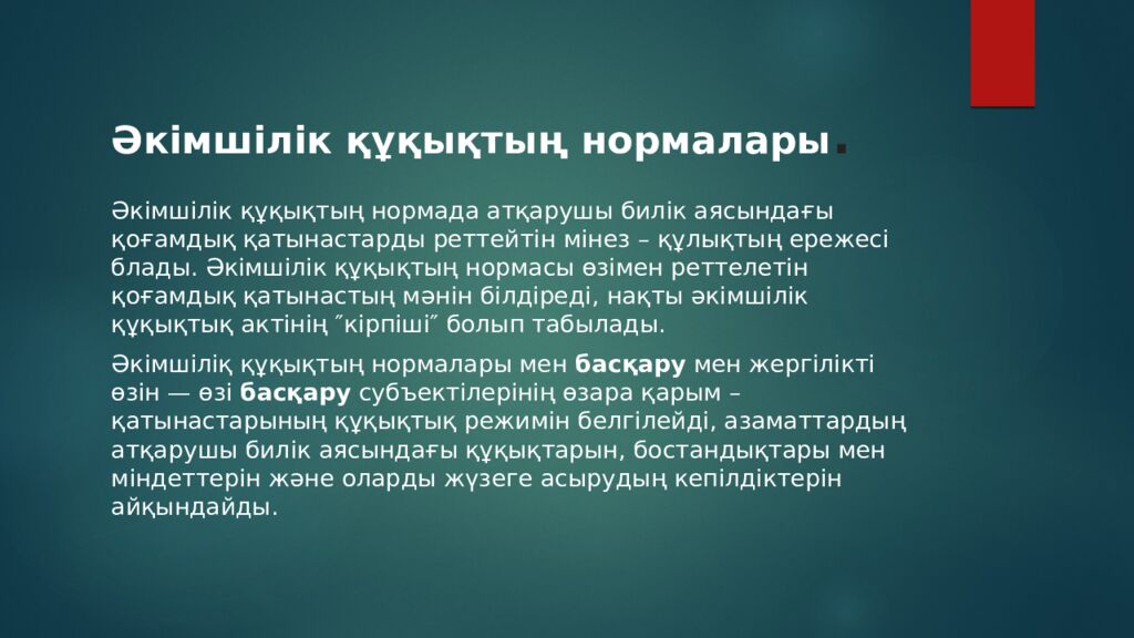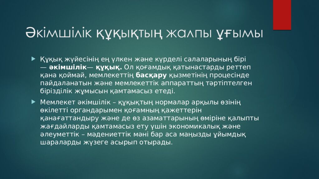 Слайд 5: Әкімшілік құқықтың жалпы ұғымы