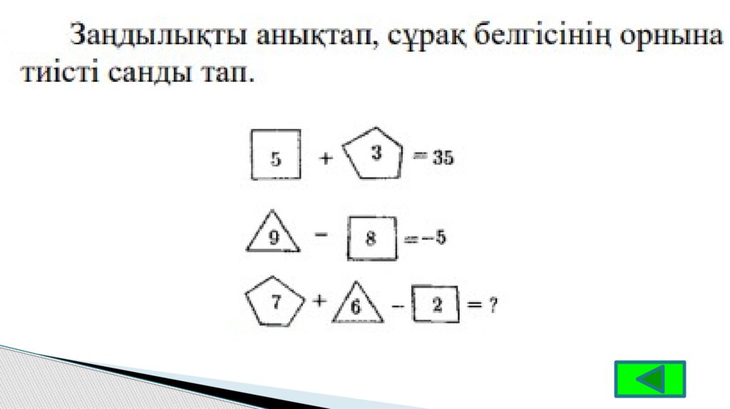 Ж-бы: (5+13)=18:3 Райхан > Жәнібек. Райхан он үште, Жанат бесте. Ең кішкентайы бесте, ол-Жанат, демек ол балабақшаға барады. Жанат-қыз. 10 ұпай