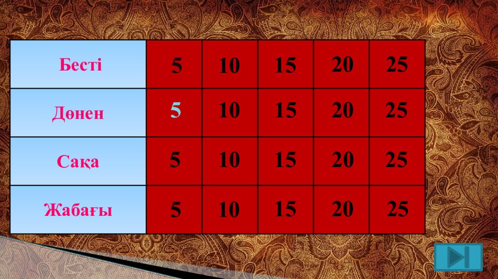 Бесті Дөнен Сақа Жабағы 5 5 5 10 15 20 25 10 15 20 25 10 15 20 25 5 10 15 20 25