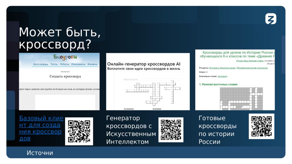 Готовые кроссворды по истории России Генератор кроссвордов с Искусственным Интеллектом Базовый клиент для создания кроссвордов Изображение Изображение Изображение Может быть, кроссворд? Источник: