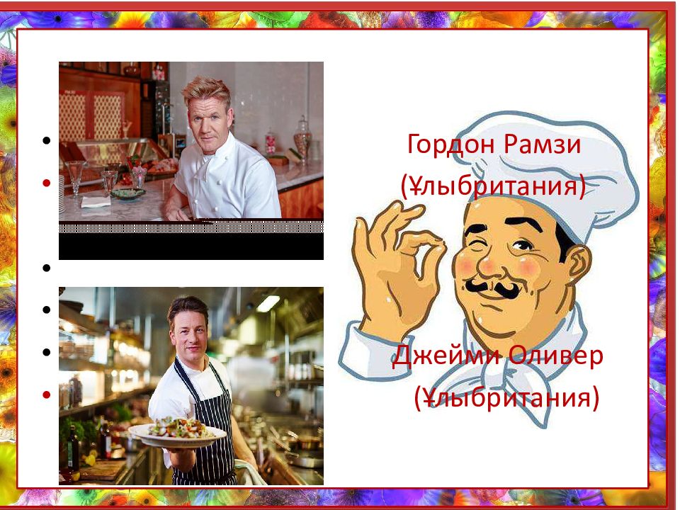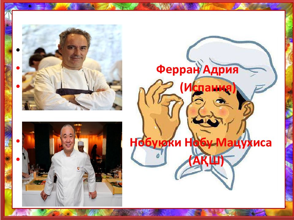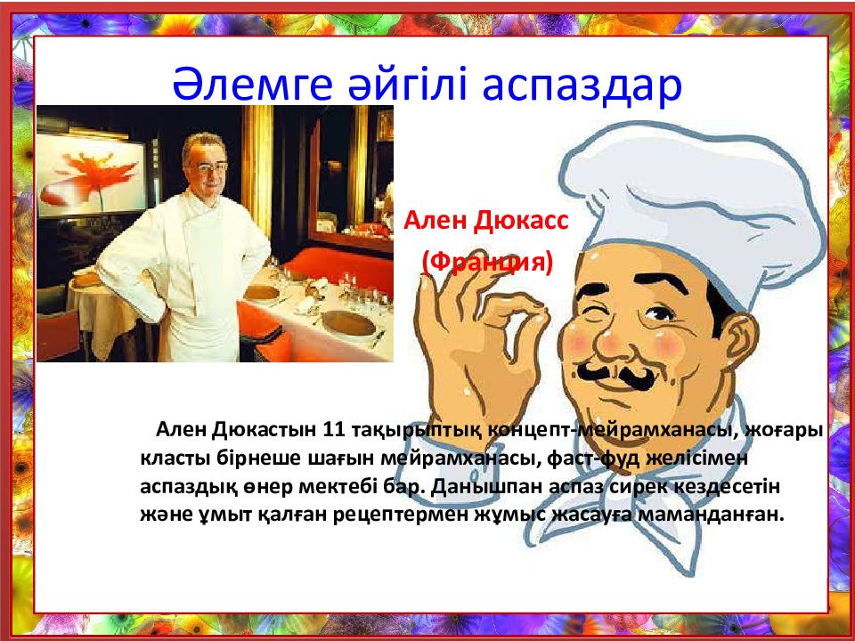 Слайд 22: Әлемге әйгілі аспаздар