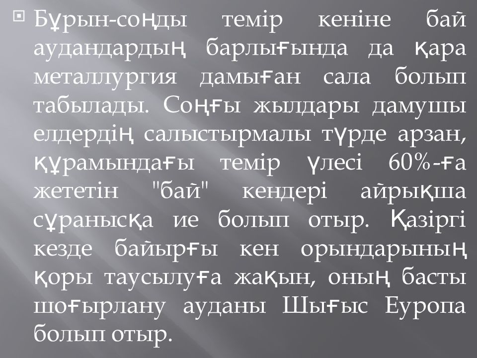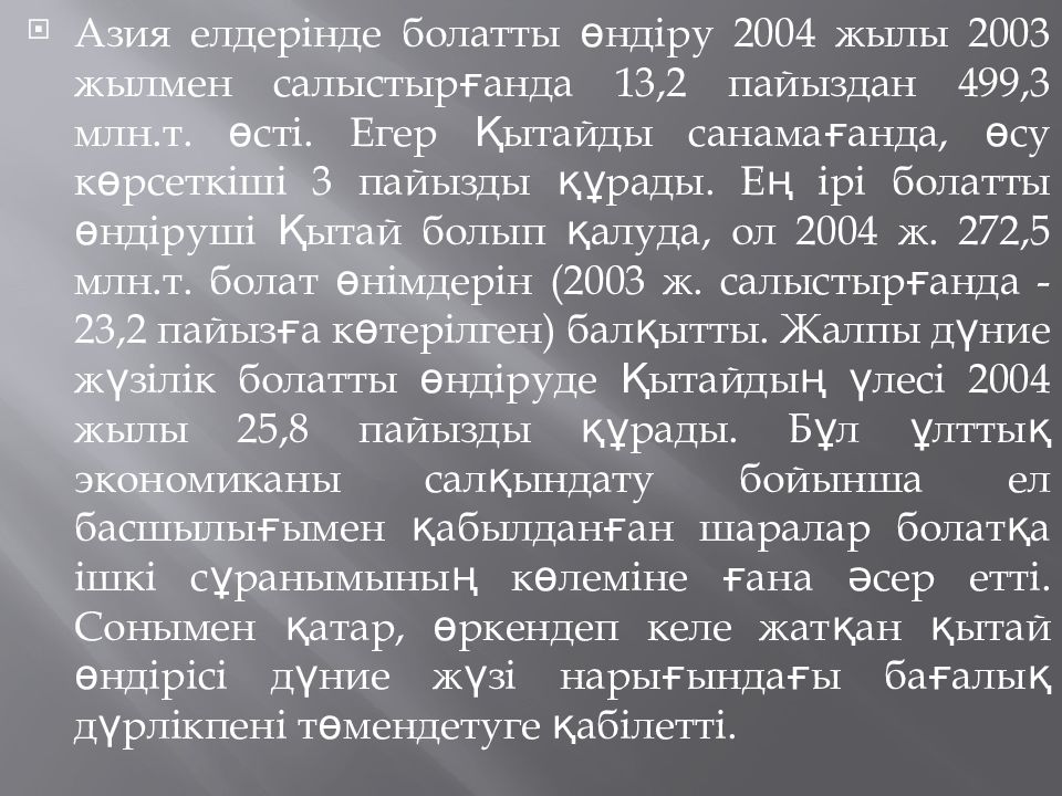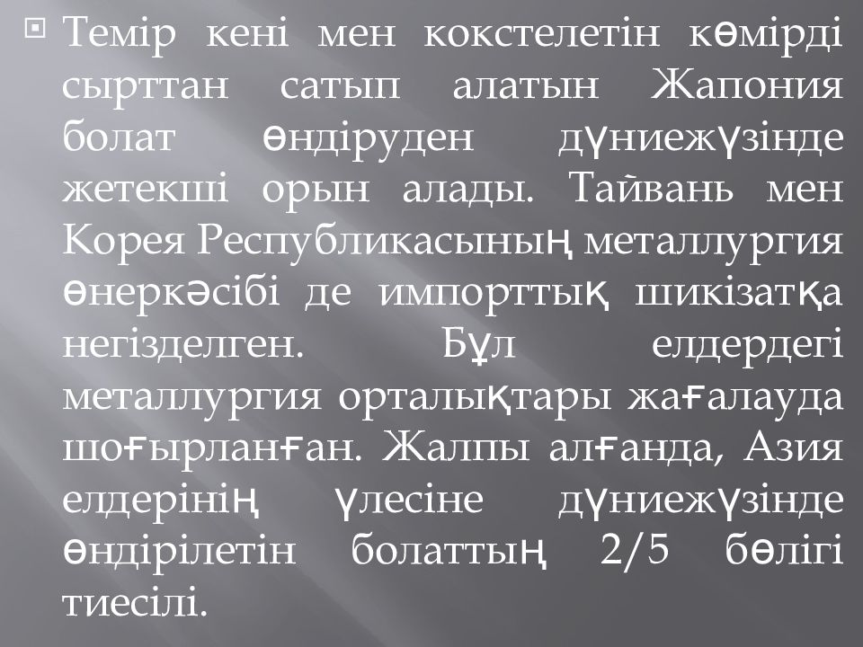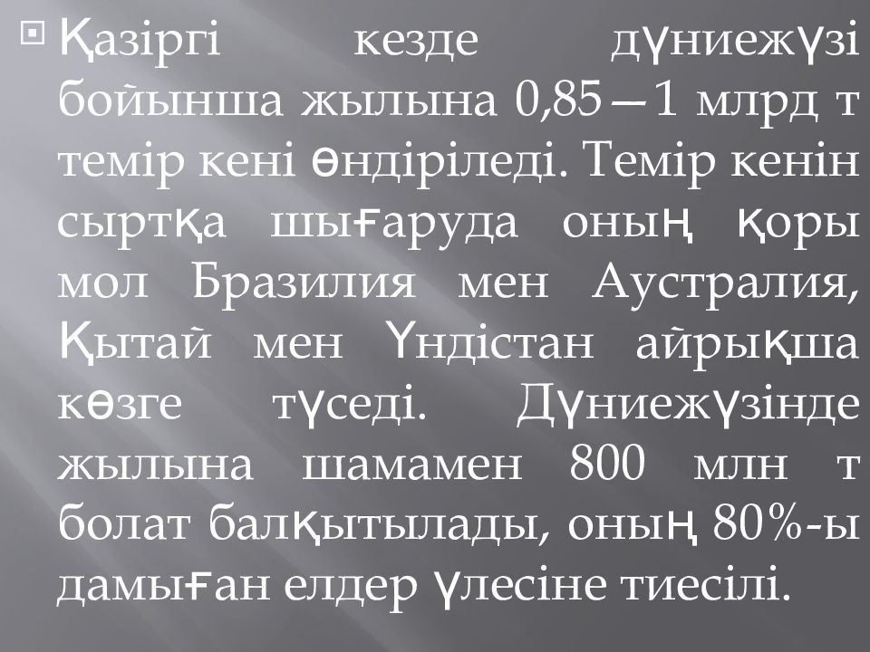 Первый слайд презентации: Әлемнің қара металлургия өнеркәсібі