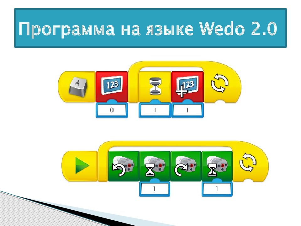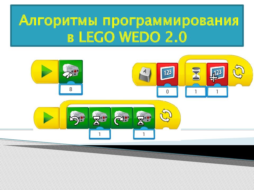 НАЧАЛО ЕХАТЬ ВПЕРЕД СКОРОСТЬ 8 ОБОРОТОВ 2 СЕКУНДЫ КОНЕЦ Робот должен ехать вперед Со скоростью 8 оборотов В течении 2 секунд. И остановиться. ОСТАНОВИТЬСЯ