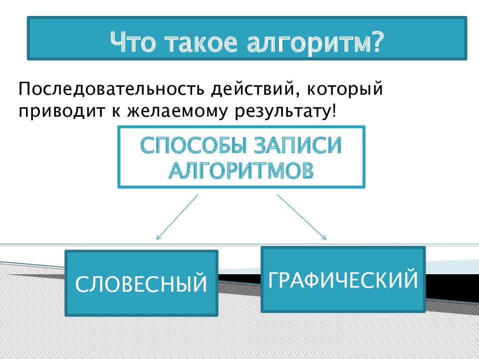 Последовательность действий, который приводит к желаемому результату! ГРАФИЧЕСКИЙ СПОСОБЫ ЗАПИСИ АЛГОРИТМОВ СЛОВЕСНЫЙ