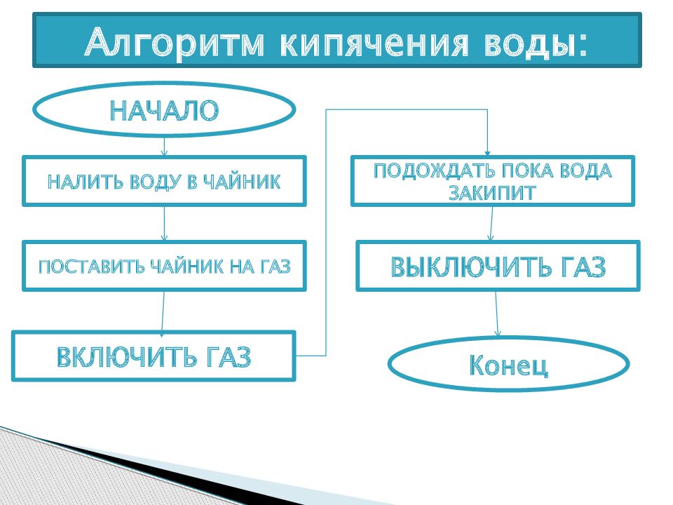 Слайд 5: Алгоритм кипячения воды:
