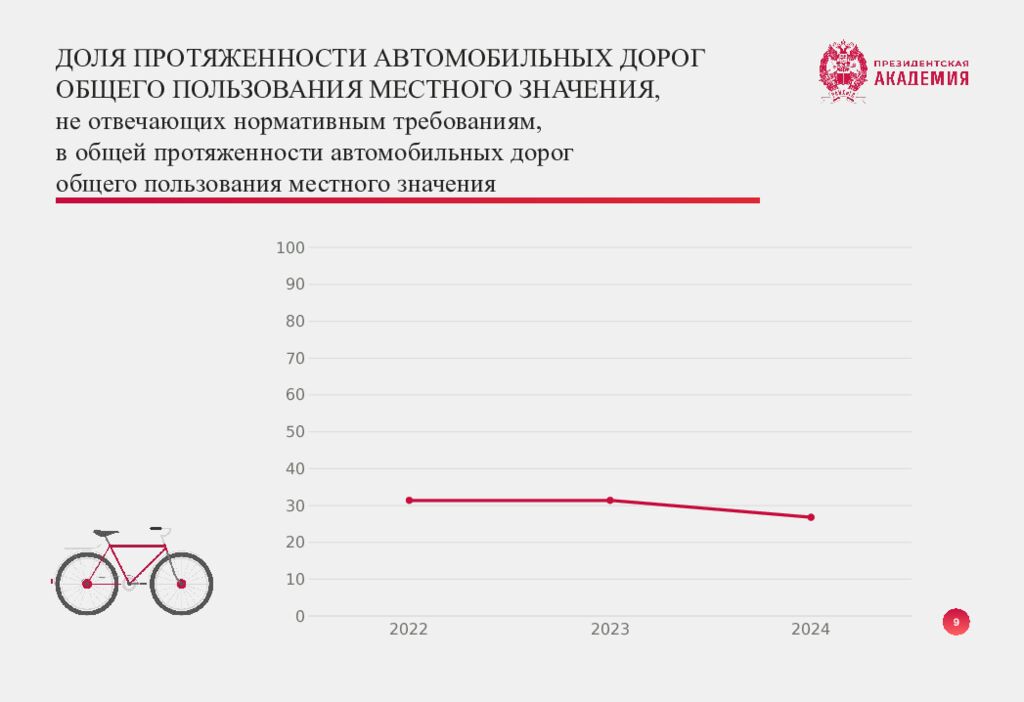 ДОЛЯ ПРОТЯЖЕННОСТИ АВТОМОБИЛЬНЫХ ДОРОГ ОБЩЕГО ПОЛЬЗОВАНИЯ МЕСТНОГО ЗНАЧЕНИЯ, не отвечающих нормативным требованиям, в общей протяженности автомобильных дорог общего пользования местного значения