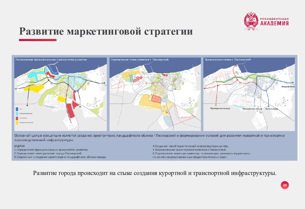 Развитие маркетинговой стратегии Развитие города происходит на стыке создания курортной и транспортной инфраструктуры.