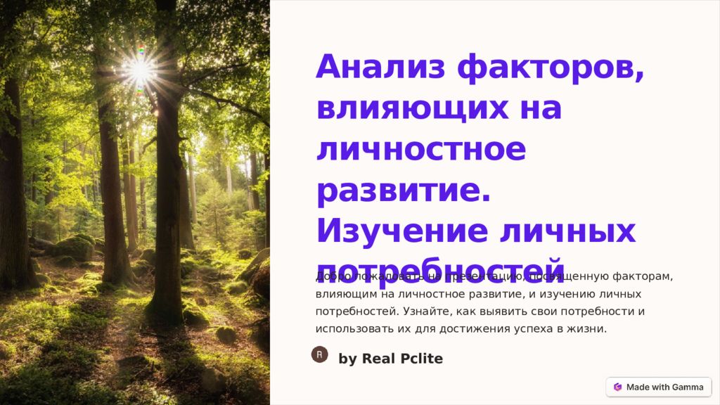 Анализ факторов, влияющих на личностное развитие. Изучение личных потребностей Добро пожаловать на презентацию, посвященную факторам, влияющим на личностное развитие, и изучению личных потребностей. Узнайте, как выявить свои потребности и использовать их для достижения успеха в жизни. by Real Pclite
