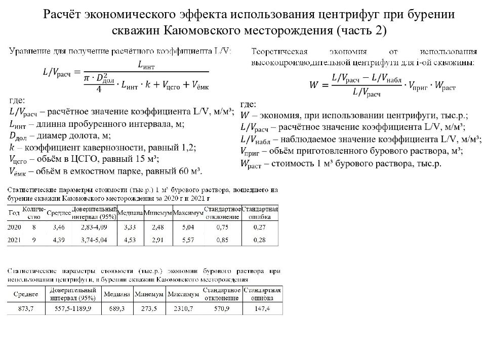 Расчёт экономического эффекта использования центрифуг при бурении скважин Каюмовского месторождения (часть 2)