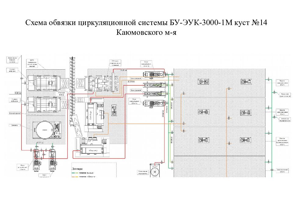 Схема обвязки циркуляционной системы БУ-ЭУК-3000-1М куст №14 Каюмовского м-я