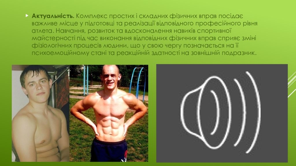 Актуальність. Комплекс простих і складних фізичних вправ посідає важливе місце у підготовці та реалізації відповідного професійного рівня атлета. Навчання, розвиток та вдосконалення навиків спортивної майстерності під час виконання відповідних фізичних вправ сприяє зміні фізіологічних процесів людини, що у свою чергу позначається на її психоемоційному стані та реакційній здатності на зовнішній подразник.