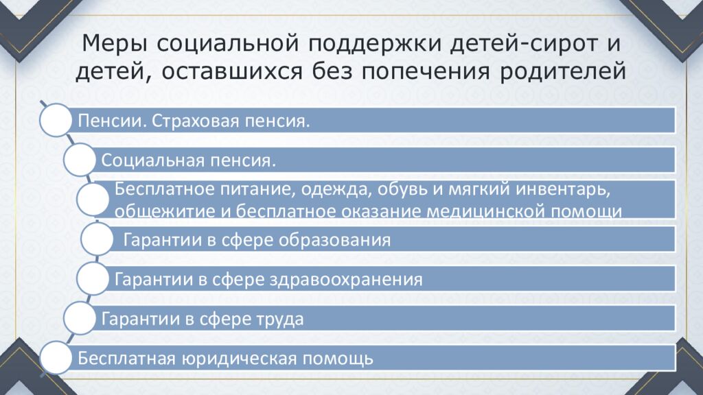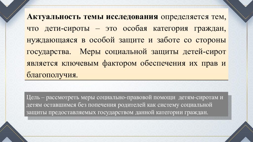 Актуальность темы исследования определяется тем, что дети-сироты – это особая категория граждан, нуждающаяся в особой защите и заботе со стороны государства. Меры социальной защиты детей-сирот является ключевым фактором обеспечения их прав и благополучия. Цель – рассмотреть меры социально-правовой помощи детям-сиротам и детям оставшимся без попечения родителей как систему социальной защиты предоставляемых государством данной категории граждан.