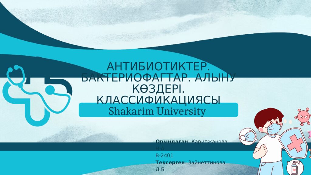 АНТИБИОТИКТЕР. БАКТЕРИОФАГТАР. АЛЫНУ КӨЗДЕРІ. КЛАССИФИКАЦИЯСЫ Shakarim University Орындаған : Карипжанова Н.А В-2401 Тексерген : Зайнеттинова Д.Б
