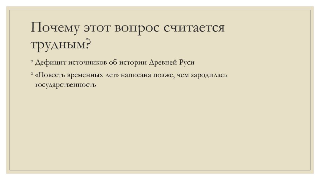 Дефицит источников об истории Древней Руси «Повесть временных лет» написана позже, чем зародилась государственность