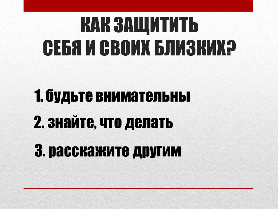 Слайд 4: КАК ЗАЩИТИТЬ СЕБЯ И СВОИХ БЛИЗКИХ?