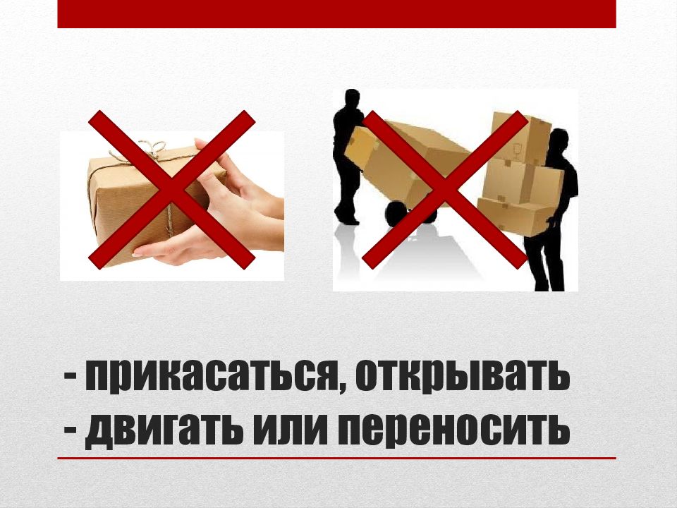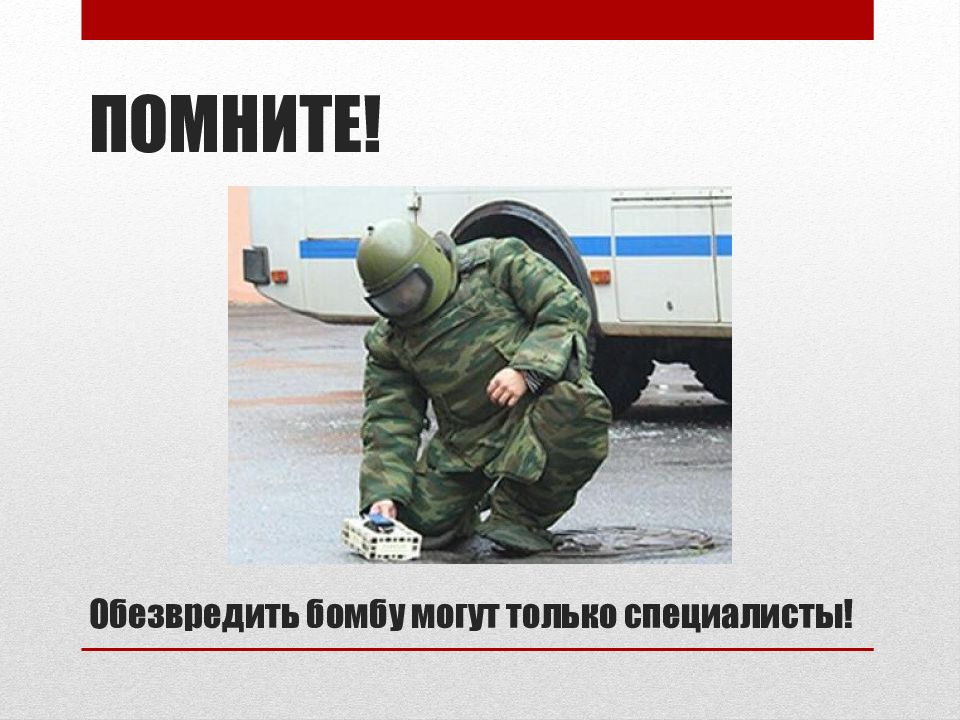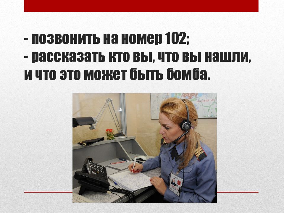 Слайд 53: позвонить на номер 102; - рассказать кто вы, что вы нашли, и что это может быть бомба