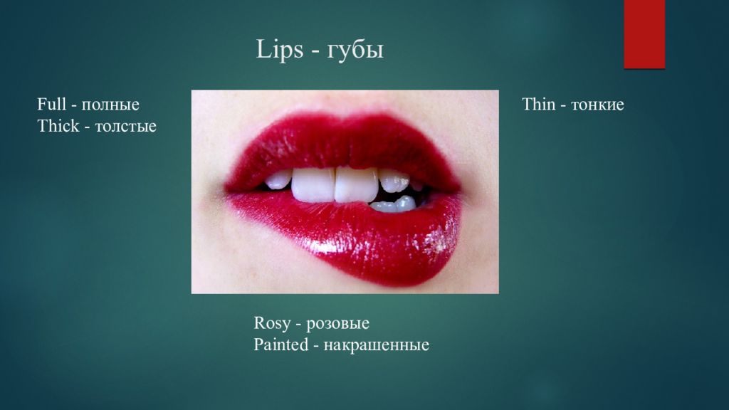 Rosy - розовые Painted - накрашенные Thin - тонкие Full - полные Thick - толстые
