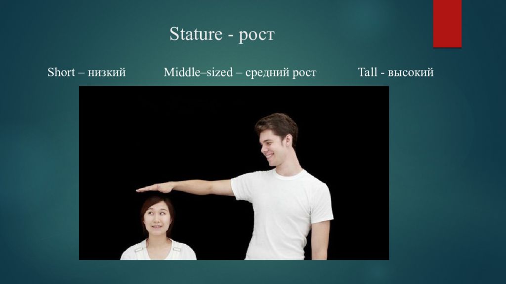 Short – низкий Middle–sized – средний рост Tall - высокий