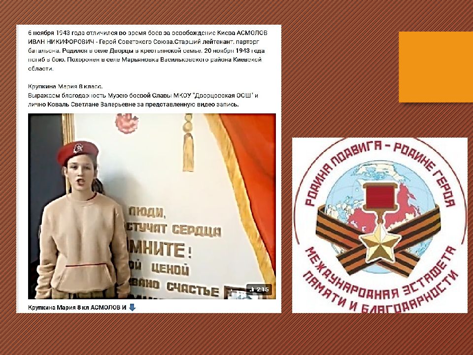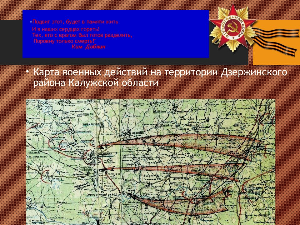 Слайд 12: Подвиг этот, будет в памяти жить И в наших сердцах гореть! Тех, кто с врагом был готов разделить, Поровну только смерть!" Ким Добкин