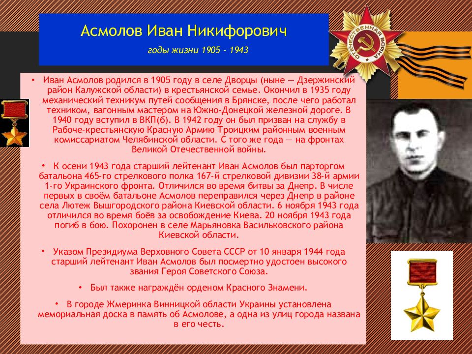 Слайд 24: Асмолов Иван Никифорович годы жизни 1905 - 1943