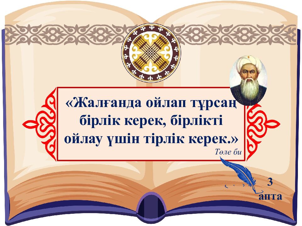 « Жалғанда ойлап тұрсаң бірлік керек, бірлікті ойлау үшін тірлік керек.» Төле би 3 апта