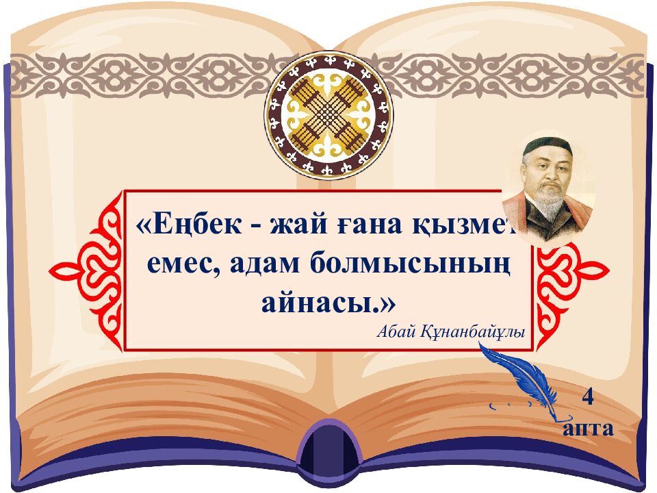 « Еңбек - жай ғана қызмет емес, адам болмысының айнасы.» Абай Құнанбайұлы 4 апта