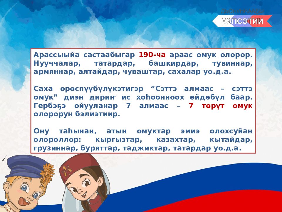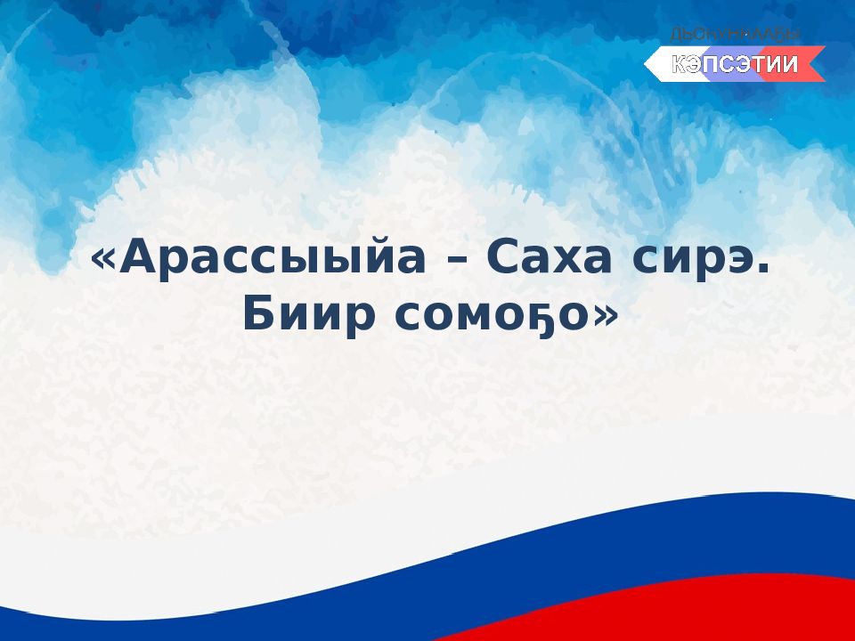 Последний слайд презентации: Арассыыйа – Саха сирэ. Биир сомоҕо »