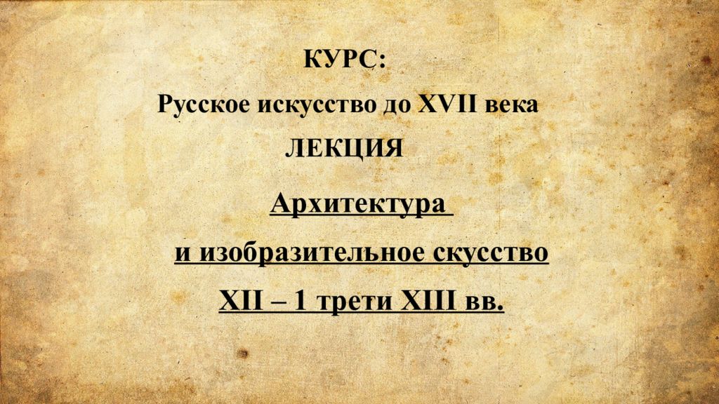Архитектура и изобразительное скусство XII – 1 трети XIII вв. КУРС: Русское искусство до XVII века ЛЕКЦИЯ