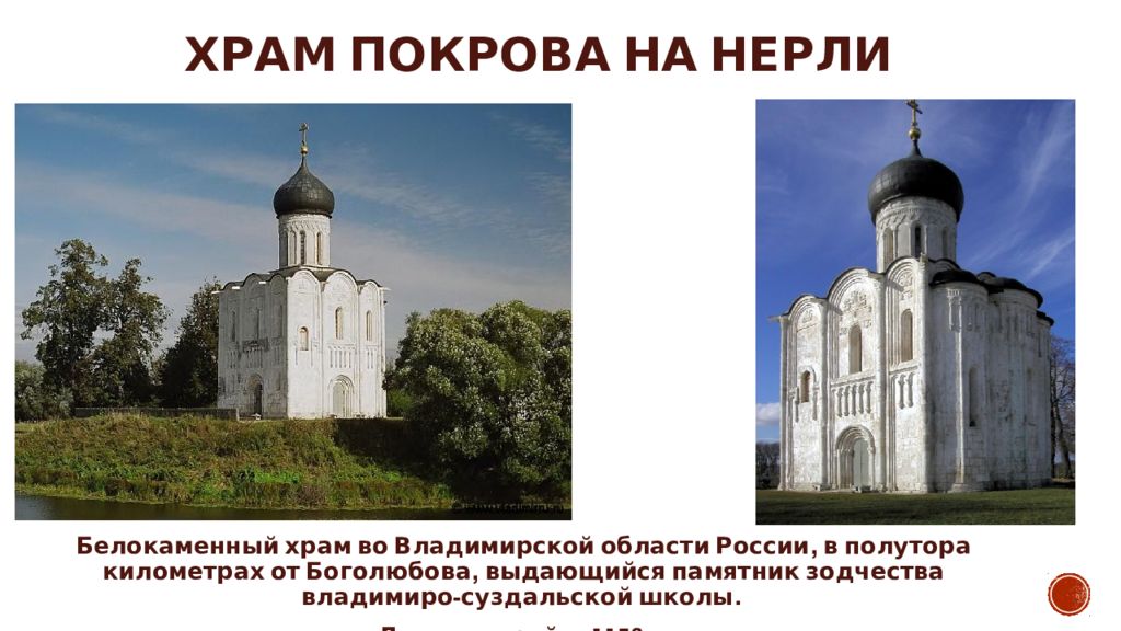 Слайд 15: ХРАМ ПОКРОВА НА НЕРЛИ