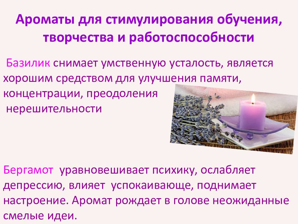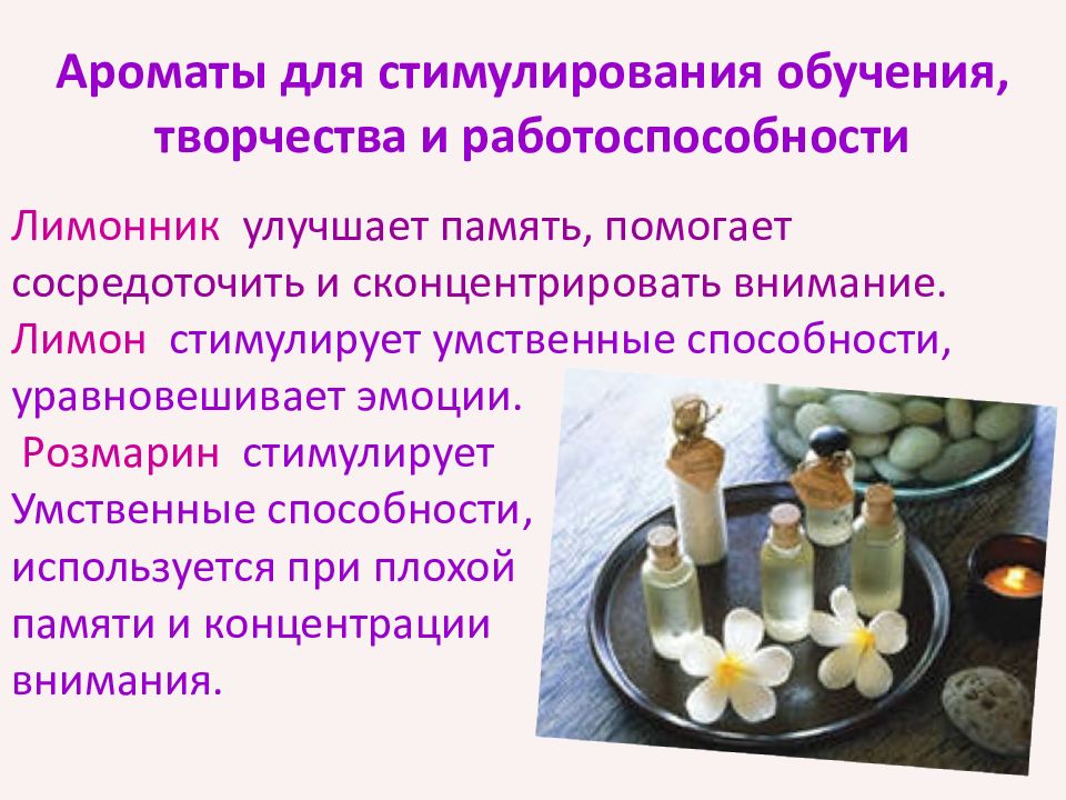Слайд 8: Ароматы для стимулирования обучения, творчества и работоспособности