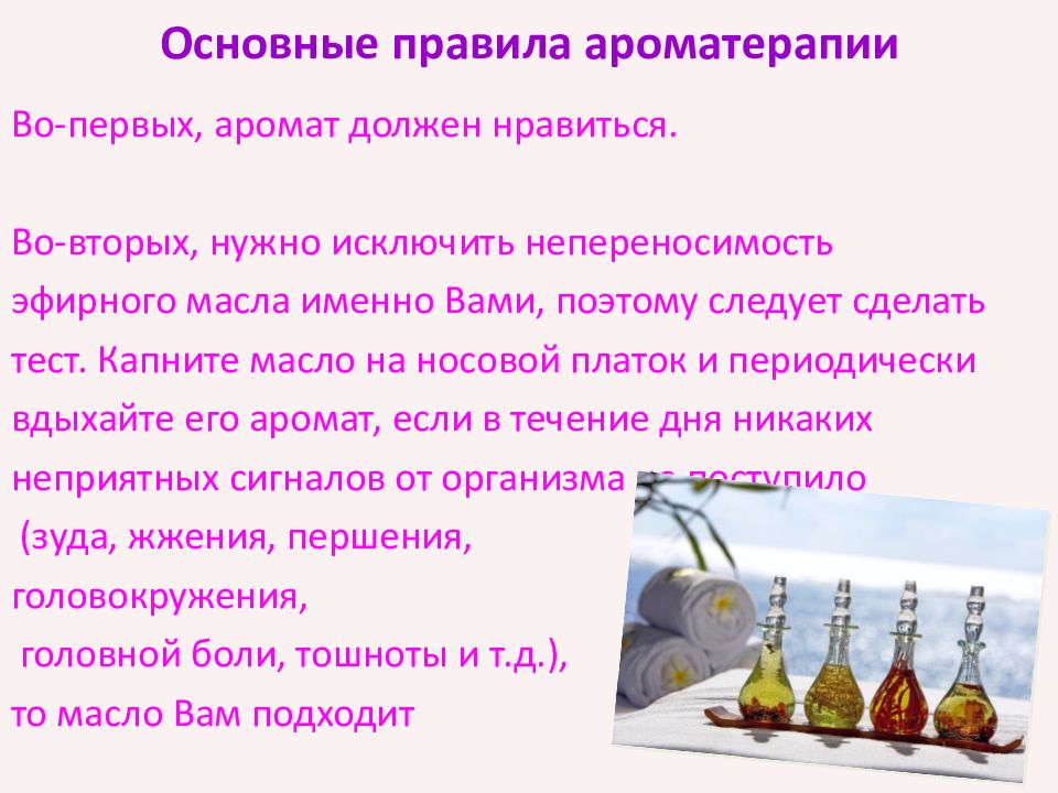 Слайд 6: Основные правила ароматерапии
