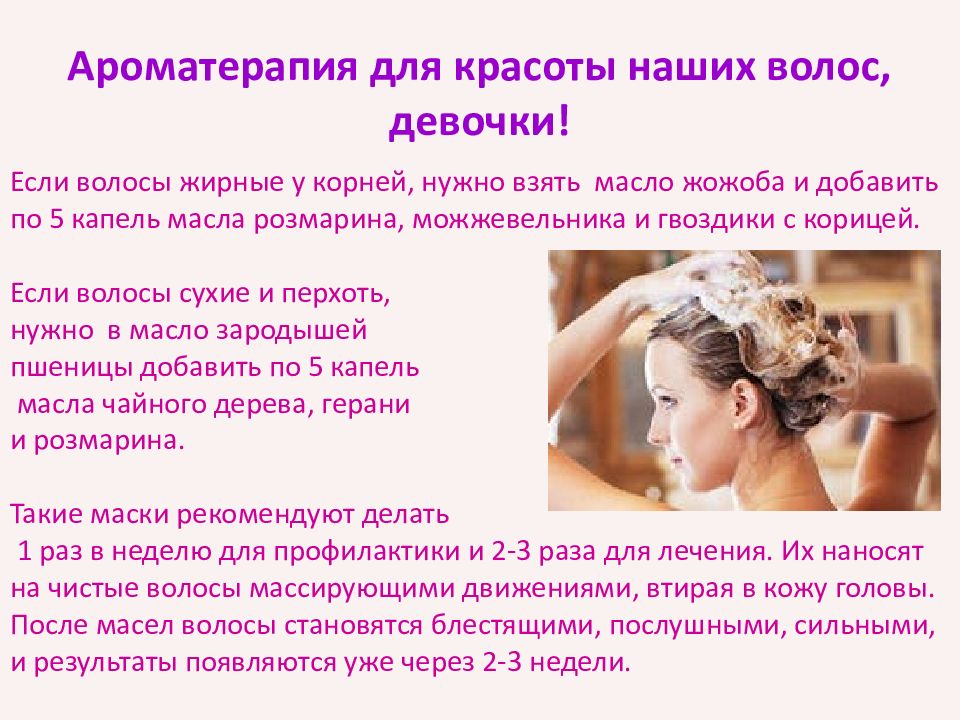 Слайд 14: Ароматерапия для красоты наших волос, девочки!