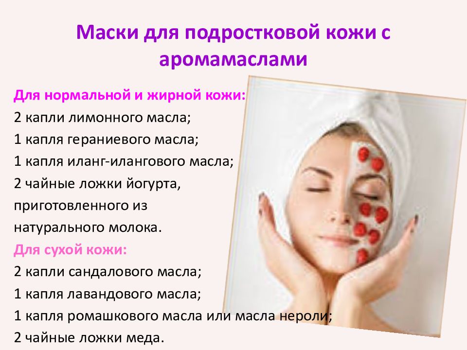 Слайд 13: Маски для подростковой кожи с аромамаслами