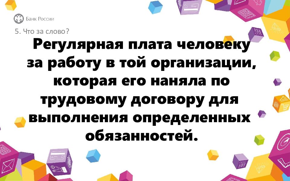 за работу в той организации, которая его наняла по трудовому договору для выполнения определенных обязанностей. 5. Что за слово?