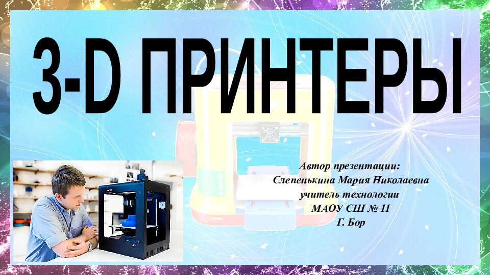 Автор презентации: Слепенькина Мария Николаевна учитель технологии МАОУ СШ № 11 Г. Бор 3- D ПРИНТЕРЫ