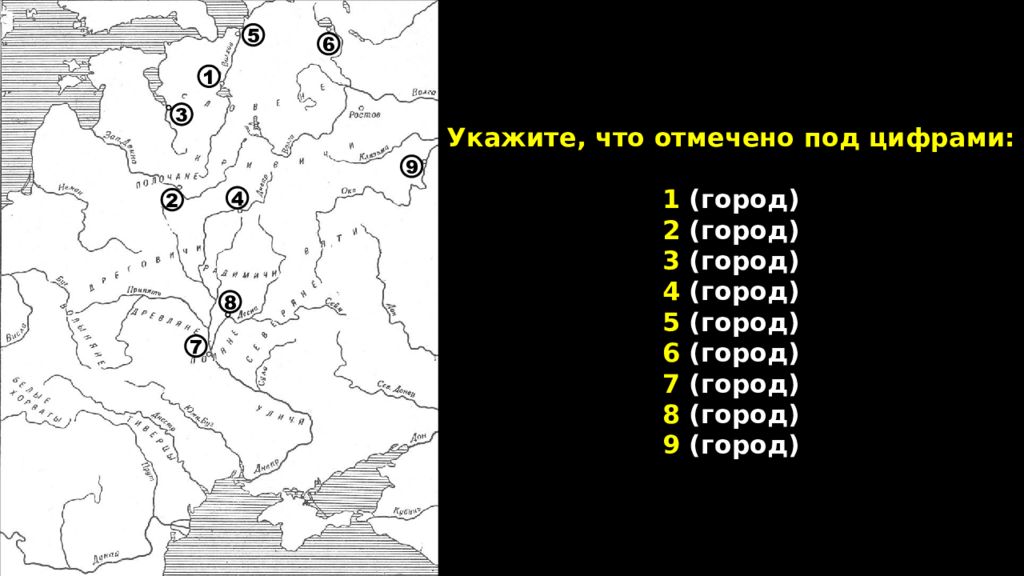 1 Укажите, что отмечено под цифрами: 1 (город) 2 (город) 3 ( город ) 4 ( город ) 5 ( город ) 6 (город) 7 (город) 8 ( город ) 9 ( город ) 2 3 4 5 6 7 8 9