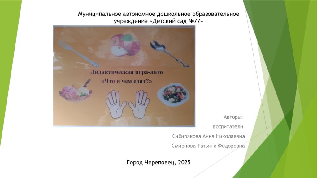 Авторы: воспитатели Сибирякова Анна Николаевна Смирнова Татьяна Федоровна Муниципальное автономное дошкольное образовательное учреждение «Детский сад №77» Город Череповец, 2025