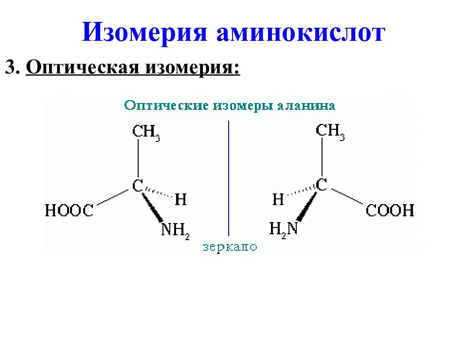 Слайд 6: Изомерия аминокислот