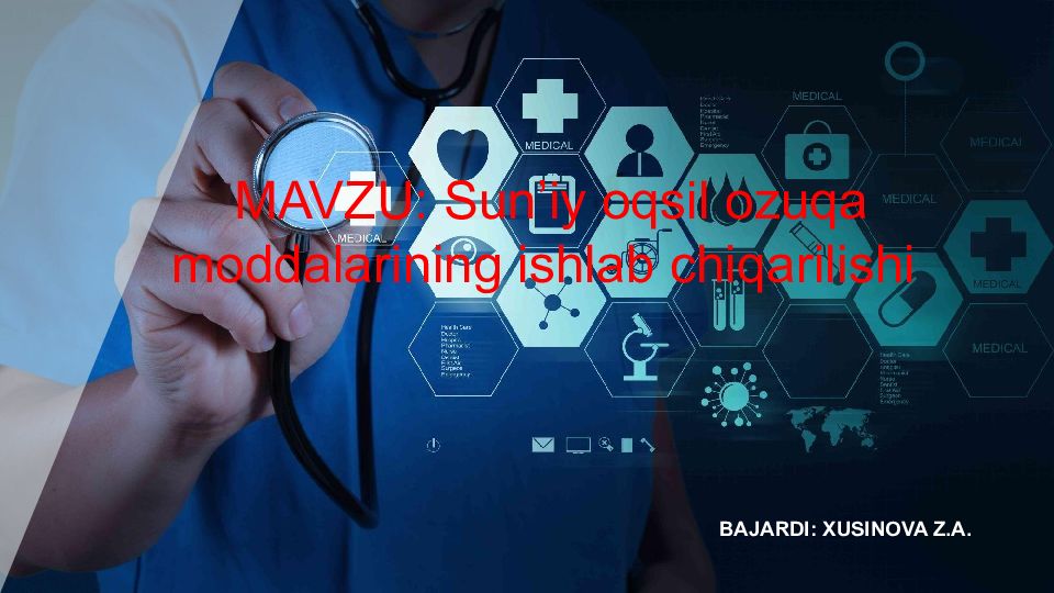 BAJARDI: XUSINOVA Z.A. MAVZU: Sun’iy oqsil ozuqa moddalarining ishlab chiqarilishi