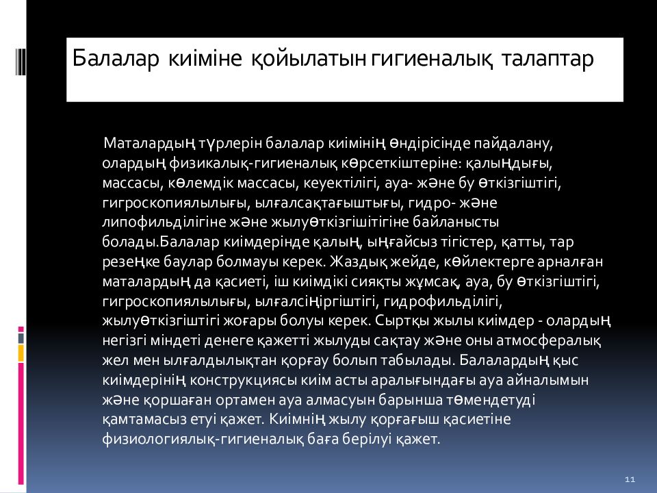 Слайд 11: Балалар киіміне қойылатын гигиеналық талаптар