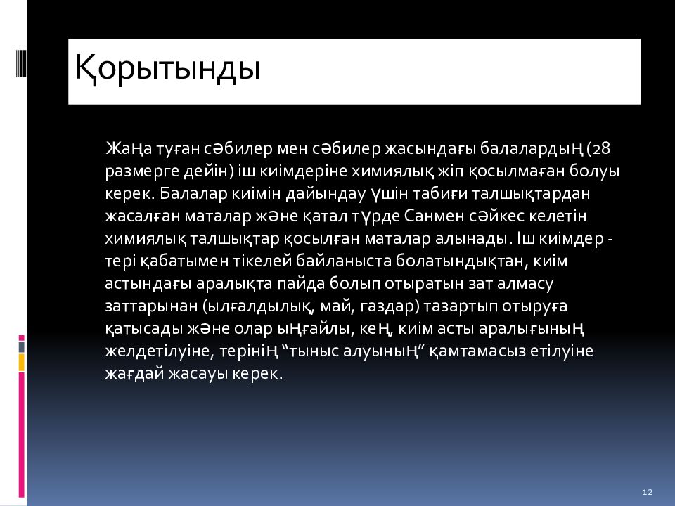 Первый слайд презентации: Балалар киіміне қойылатын гигиеналық талаптар