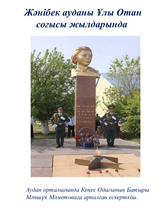 Слайд 11: Жәнібек ауданы Ұлы Отан соғысы жылдарында