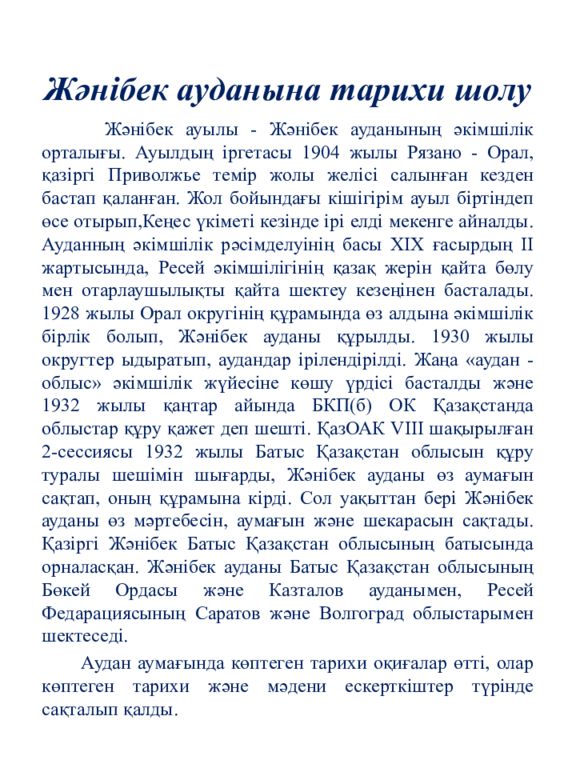 Слайд 9: Жәнібек ауданына тарихи шолу