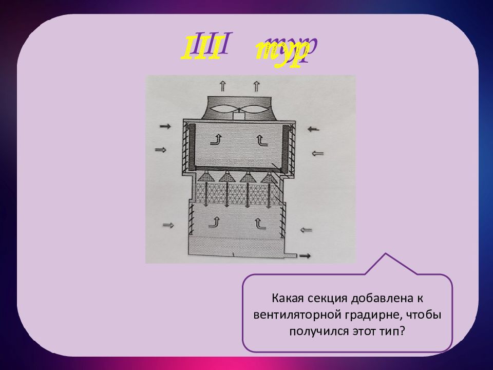 III тур III тур Какая секция добавлена к вентиляторной градирне, чтобы получился этот тип?