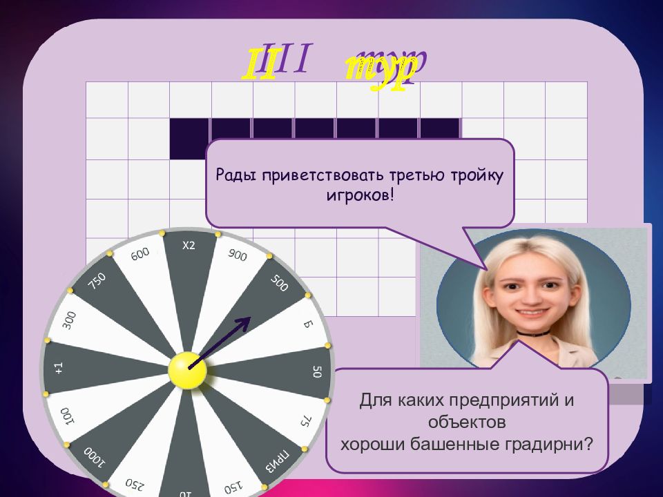 III тур II тур к р у п н ы х Рады приветствовать третью тройку игроков! Для каких предприятий и объектов хороши башенные градирни?