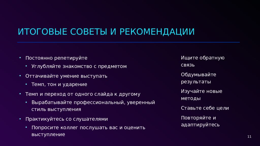Слайд 11: ИТОГОВЫЕ СОВЕТЫ И РЕКОМЕНДАЦИИ