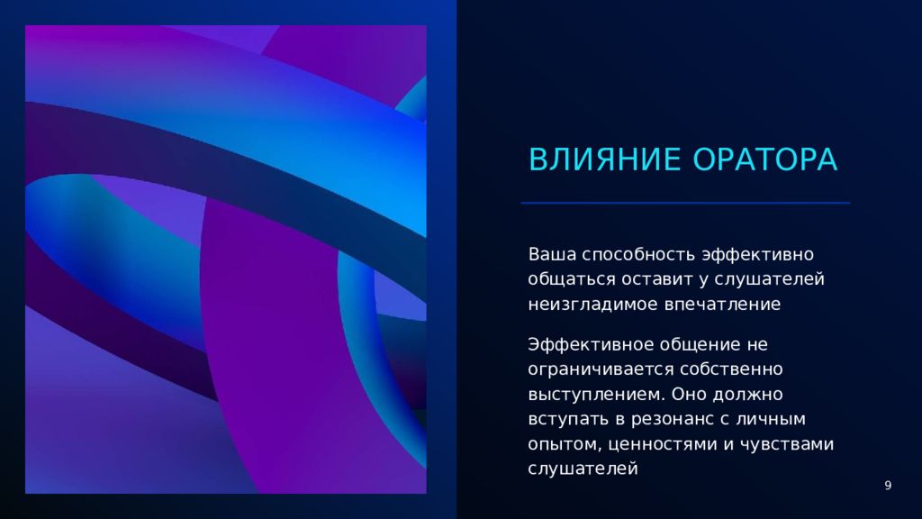 Ваша способность эффективно общаться оставит у слушателей неизгладимое впечатление Эффективное общение не ограничивается собственно выступлением. Оно должно вступать в резонанс с личным опытом, ценностями и чувствами слушателей 9